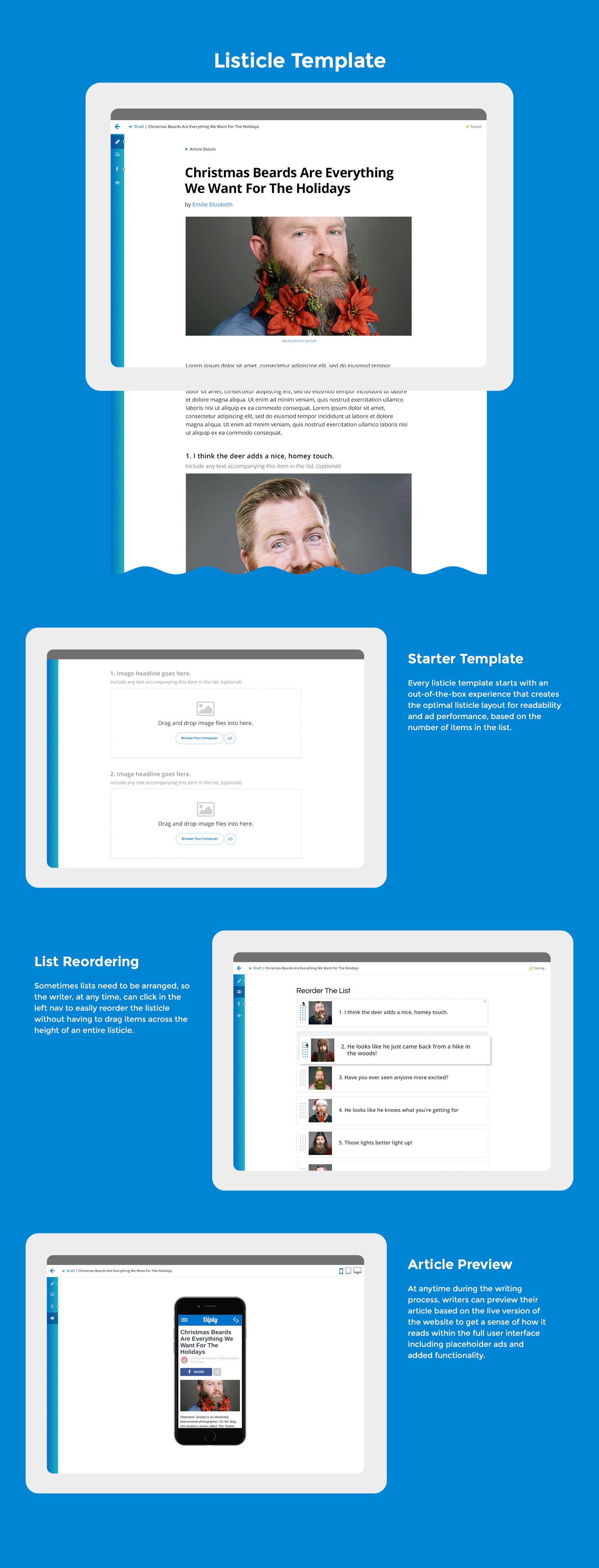 As the Director of Design at Diply, I had the pleasure of collaborating with, and leading, a cross-functional team on the redesign of Diply's content creation tool, Diply Create.